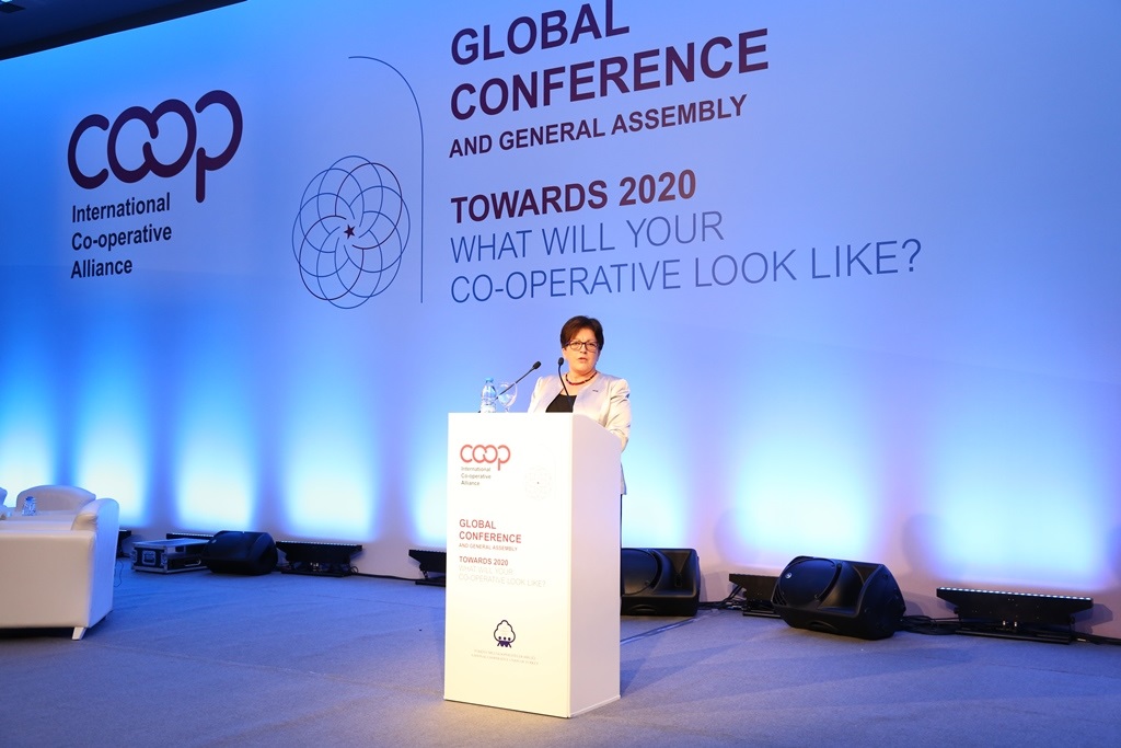 13 Kasım’da yapılan ICA Genel Kurulu ICA Başkanı DamePaulineGreen’in Yönetim Kurulu raporunu sunuş konuşması ile başladı. Green konuşmasında son dokuz yılın (2011-2015) kendi kariyerinde önemli bir dönemi kapsadığını ve elde edilen başarıların kendisinin değil, yönetim kurulunun ve ICA personellinin olduğunu söyledi. Green özellikle bir yıldır yaptıklarını anlattı ve Birleşmiş Milletler’in 2030 Gündemine ilişkin rapora dikkat çekerek bu raporda kooperatiflere yer verildiğinin altını çizdi.
