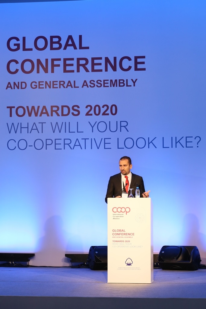 “Ülkemizde seçimlerden önce görülen kötü olaylar nedeniyle dünyanın bazı ülkelerindeki yöneticiler vatandaşlarını Türkiye’ye gitmeme yönünde uyardılar. Bütün uyarılara rağmen bu toplantının Türkiye’de yapılması için çok gayret gösterdik, tüm dünyadaki kooperatif yöneticilerini Türkiye’ye getirmek için. ICA Başkanı’na çok teşekkür ediyoruz. Ülkemiz 1 Kasım seçimlerinden sonra rahatlamış, herkes derin bir nefes almıştır. Artık eksik kalan işlerimizi tamamlama zamanı gelmiştir. Yeni kooperatifler yasasının bir an önce çıkarılması gerekmektedir. Bu yasa ile kooperatiflerimizin Ticaret Odaları vesayetinden kurtarılmalarını, tek çatı altında toplanıp güvenilir ve sürdürülebilir bir yapıya kavuşturulmalarını bekliyoruz.”
