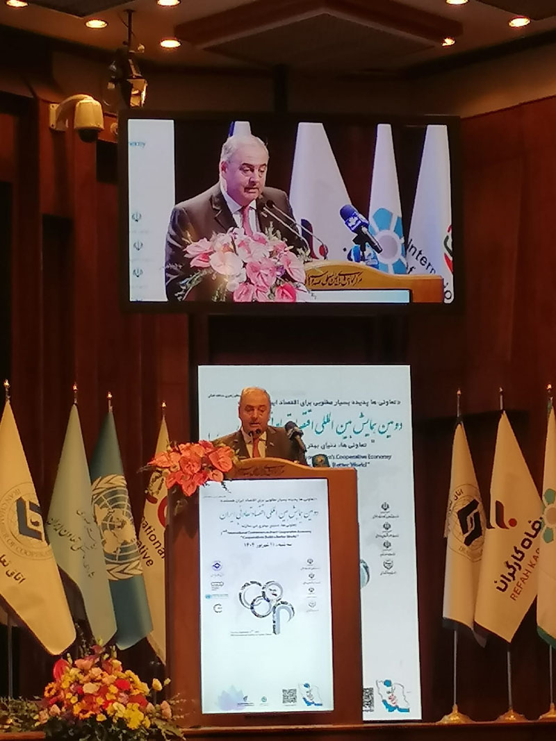 Kooperatifler Daha İyi Bir Dünya kurar temasıyla düzenlenen ikinci Uluslararası Kooperatif Ekonomisi Kongresi, Birleşmiş Milletler'in İran'daki desteğiyle 2 Eylül 2025'te Tahran'da düzenlendi. Kongre, sürdürülebilir kalkınma, ekonomik dayanıklılık ve sosyal eşitliği sağlamada kooperatiflerin rolünü incelemek üzere çeşitli paydaşları bir araya getirdi. Kongreye başta İran Kooperatifler Odası Başkanı, Uluslararası Kooperatifler Birliği (ICA) Yönetim Kurulu Üyesi BahmanAbdollahi, ICA Başkanı ArielGuarco, ülkedeki BM Kalkınma Programı (UNDP), Gıda ve Tarım Örgütü (FAO) ve BM Ekonomik ve Sosyal İşler Dairesi (UNDESA) temsilcileri, ülkedeki kooperatiflerle ilgili Bakanlar, kongre üyeleri, akademisyenler, sivil toplum, akademi ve diplomatik kuruluşların temsilcileri, kooperatif liderleri ile ICA üyesi ülkelerden temsilciler, yabancı misyonlardan 1.120 katılımcıyı bir araya getirdi.Kongre ProgramınaTürkiye Milli Kooperatifler Birliğini temsilen Başkan Yardımcısı Hanefi Ogus, bir uzmanımız ve Ticaret Bakanlığından bir uzman katıldılar.